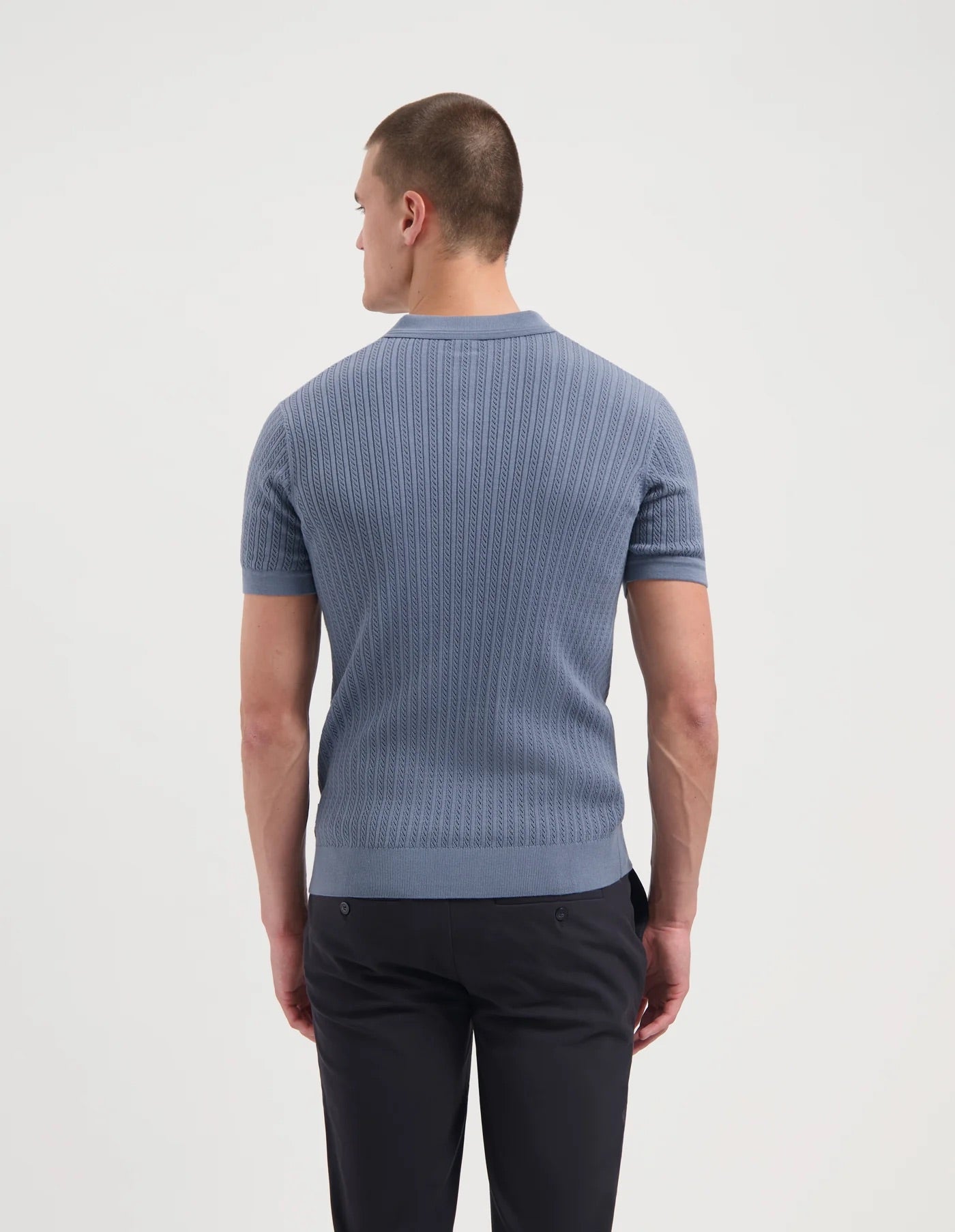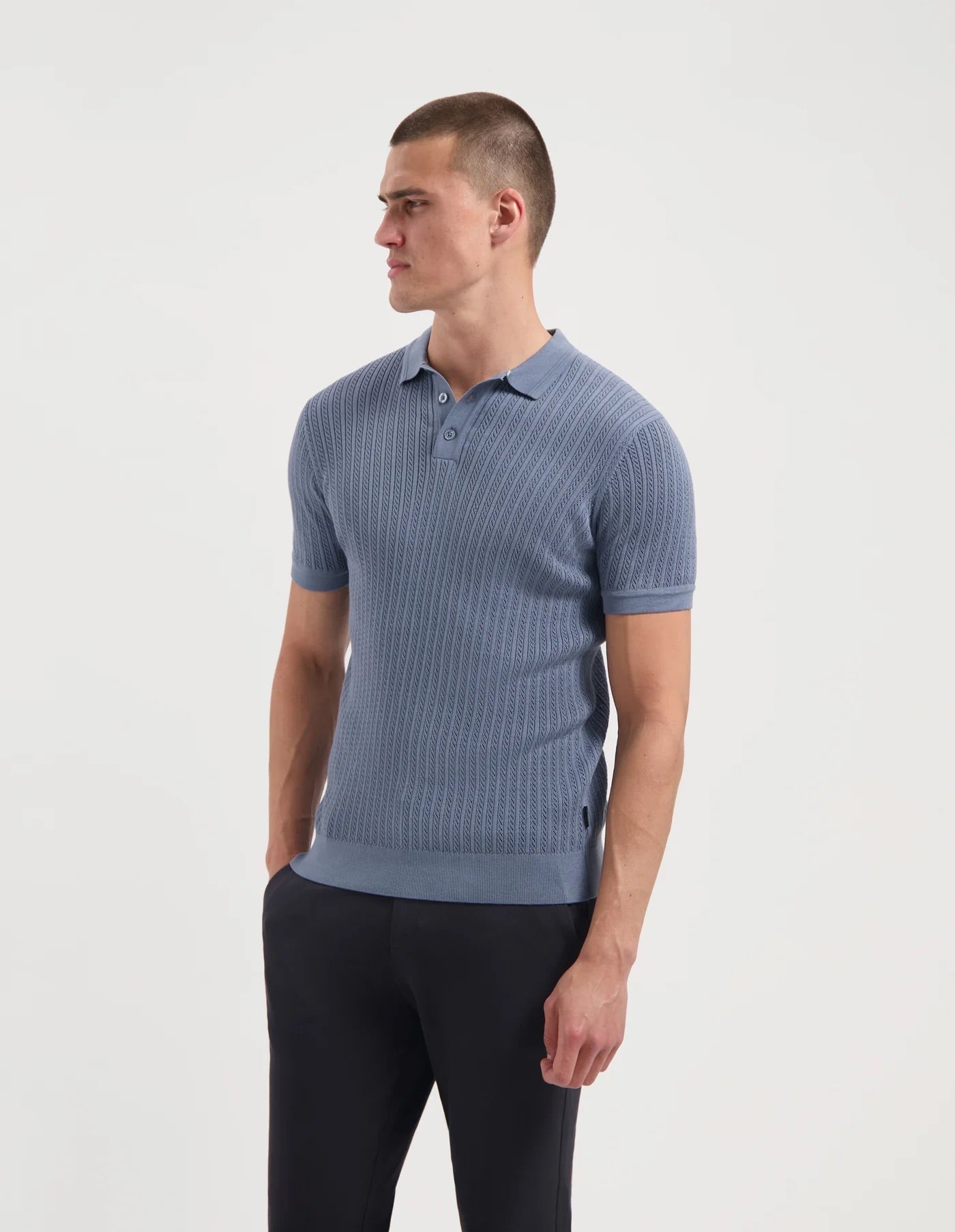 De DAVID is een gebreide polo met een rijke kabelstructuur en stijlvolle uitstraling. Gemaakt van 100% katoen in onze zachte Cotton Finest Knit kwaliteit.